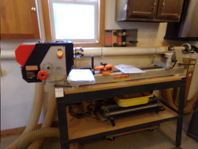 Including: Jet 15” Planer; Powermatic 60B, 8” Jointer; Jet Air Filtration System-Suspended; Grizzley G1070 Oscilliating Spindle Sander; Grizzley G1140 Edge Sander; Router Table-Cart; Delta 18” Belt Sander w/ Suction; Craftsman Wood Lathe; Craftsman Table Saw w/Extended Table; Packard 14” Wood Bandsaw; Craftsman Drill Press; Bosch Compound Miter Saw On Rolling Stand; Delta Dust Collector; Roller Stands; Lots Of Quality Power Tools Including – Biscuit Jointer, Many Routers, Drills, Circular Saws, Planers, Many Palm Sanders, Many Other Types Of Power Tools; (100+) Wood Clamps Of All Kinds To Be Sold In Groups. Large Qty. Of Quality Router Bits; Many Saw Blades Of All Types; Many Other Nice Items Not Listed;